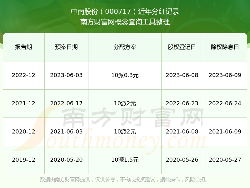 一、中南股份(000717)股票分紅記錄