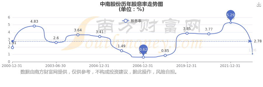 近年中南股份年度股息率走勢(shì)如下圖: