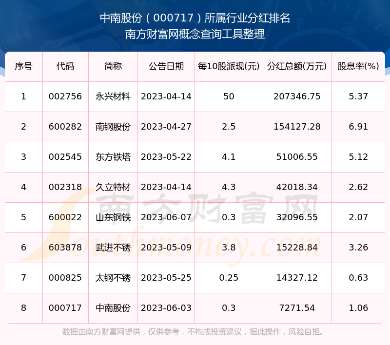 二、中南股份000717行業(yè)分紅排名