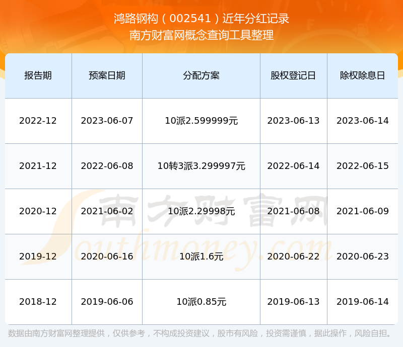 一、鴻路鋼構(gòu)(002541)股票分紅記錄