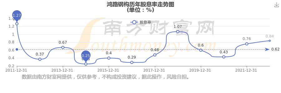 近年鴻路鋼構(gòu)年度股息率走勢如下圖: