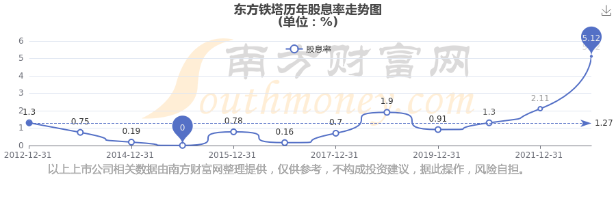 東方鐵塔歷年股息率走勢(shì)如下圖: