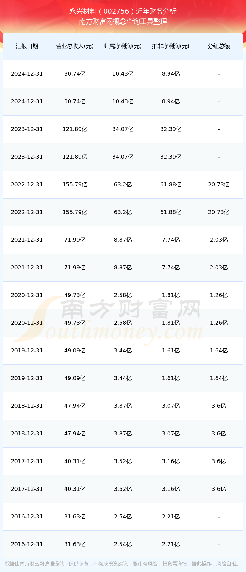 永興材料最新一次公布的分紅方案:10轉(zhuǎn)3派50元。