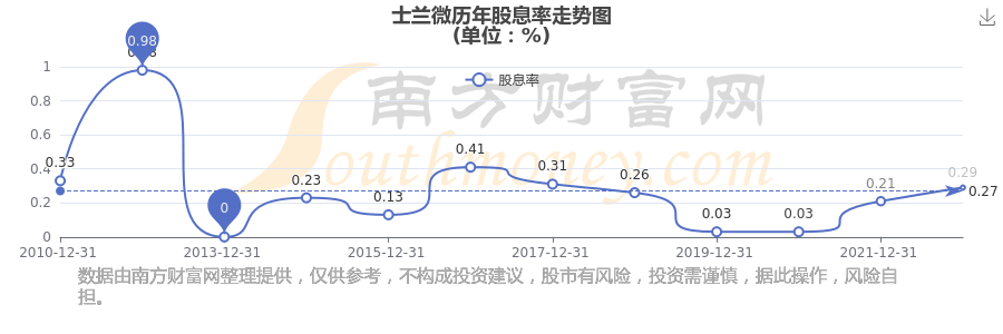 士蘭微歷年股息率走勢(shì)如下圖: