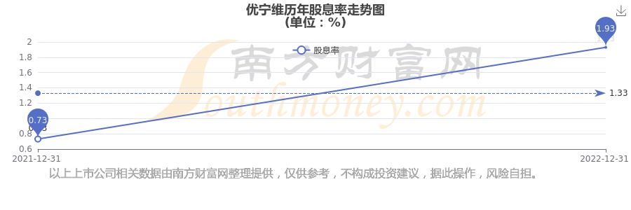優(yōu)寧維歷年股息率走勢如下圖: