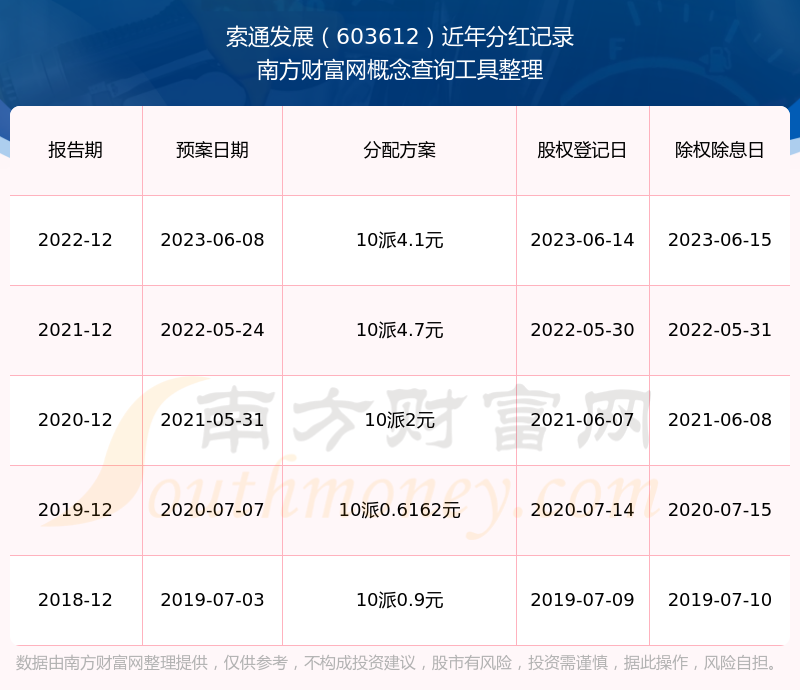 索通發(fā)展最新一次公布的分紅方案:10派4.1元。