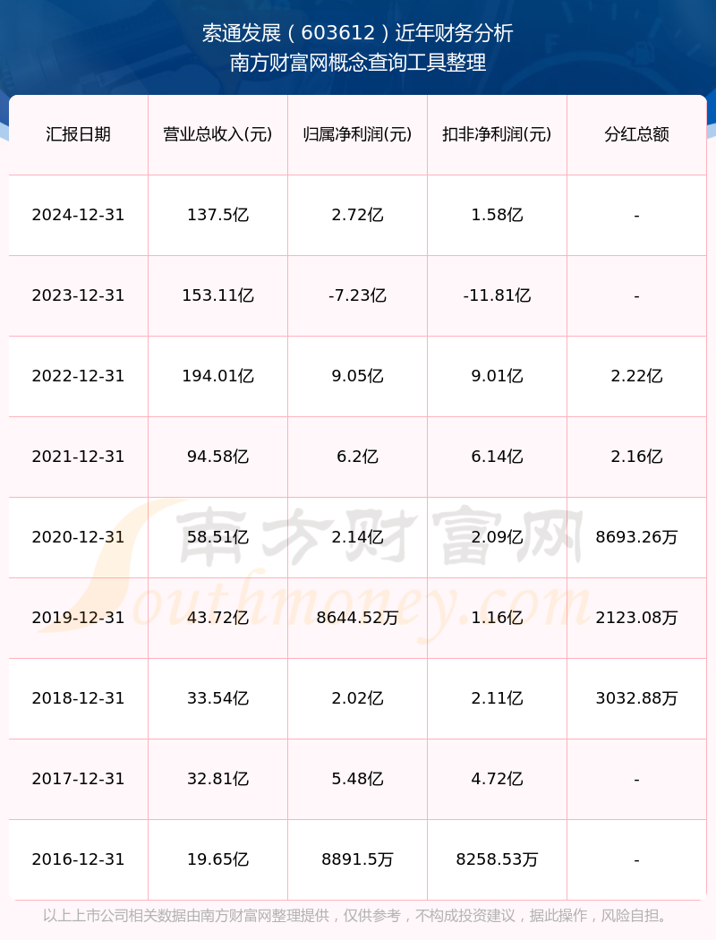索通發(fā)展歷年分紅派息情況如下表所示: