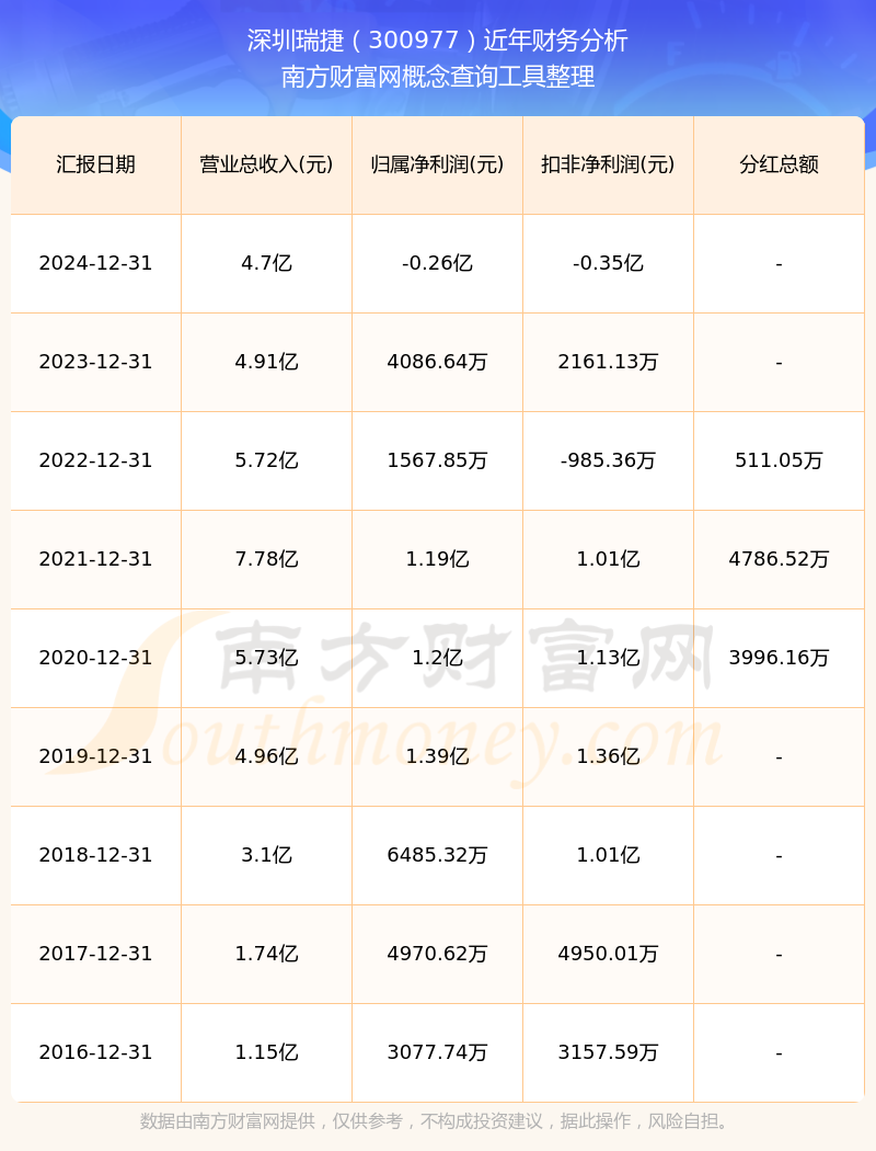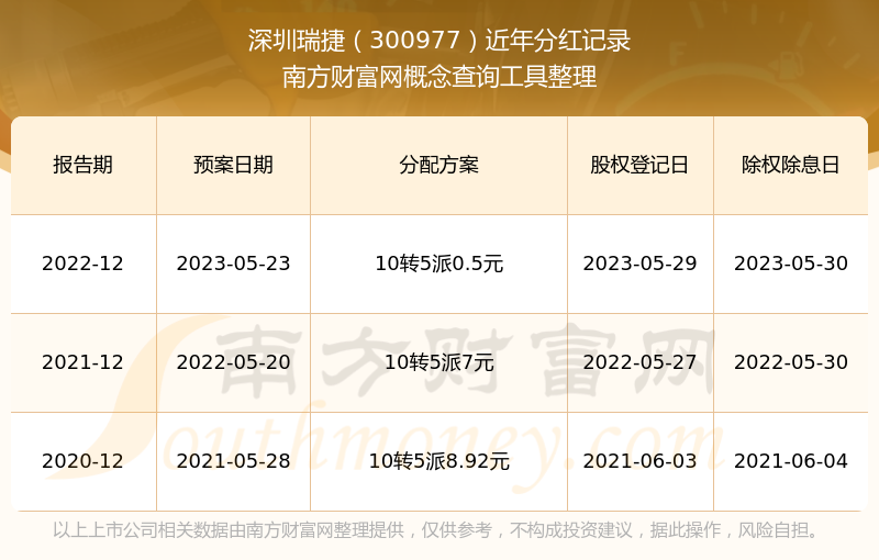深圳瑞捷歷年分紅派息情況如下表所示: