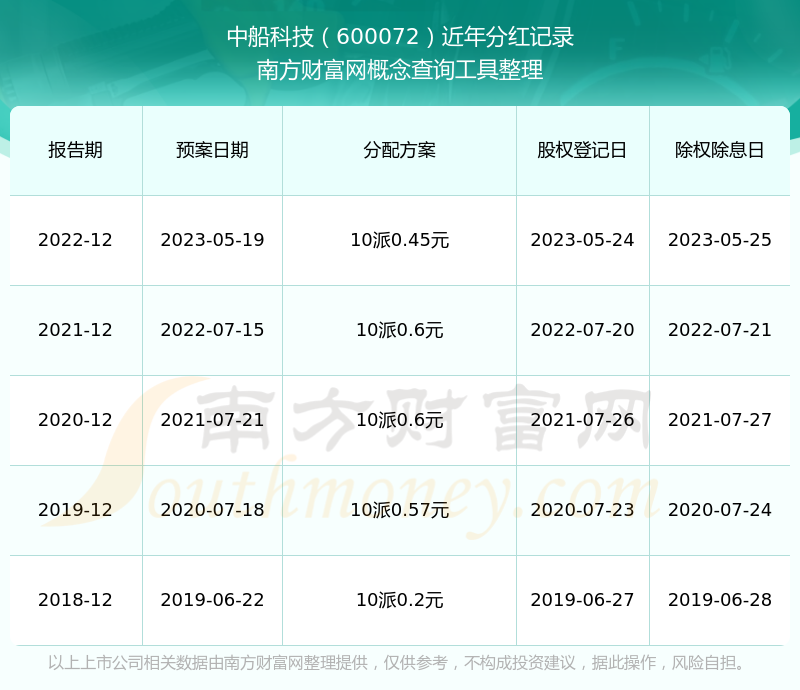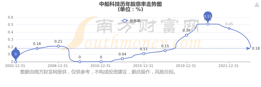 中船科技最新一次公布的分紅方案:10派0.45元。