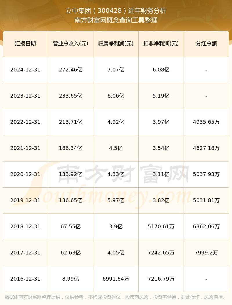 立中集團(tuán)歷年分紅派息情況如下表所示: