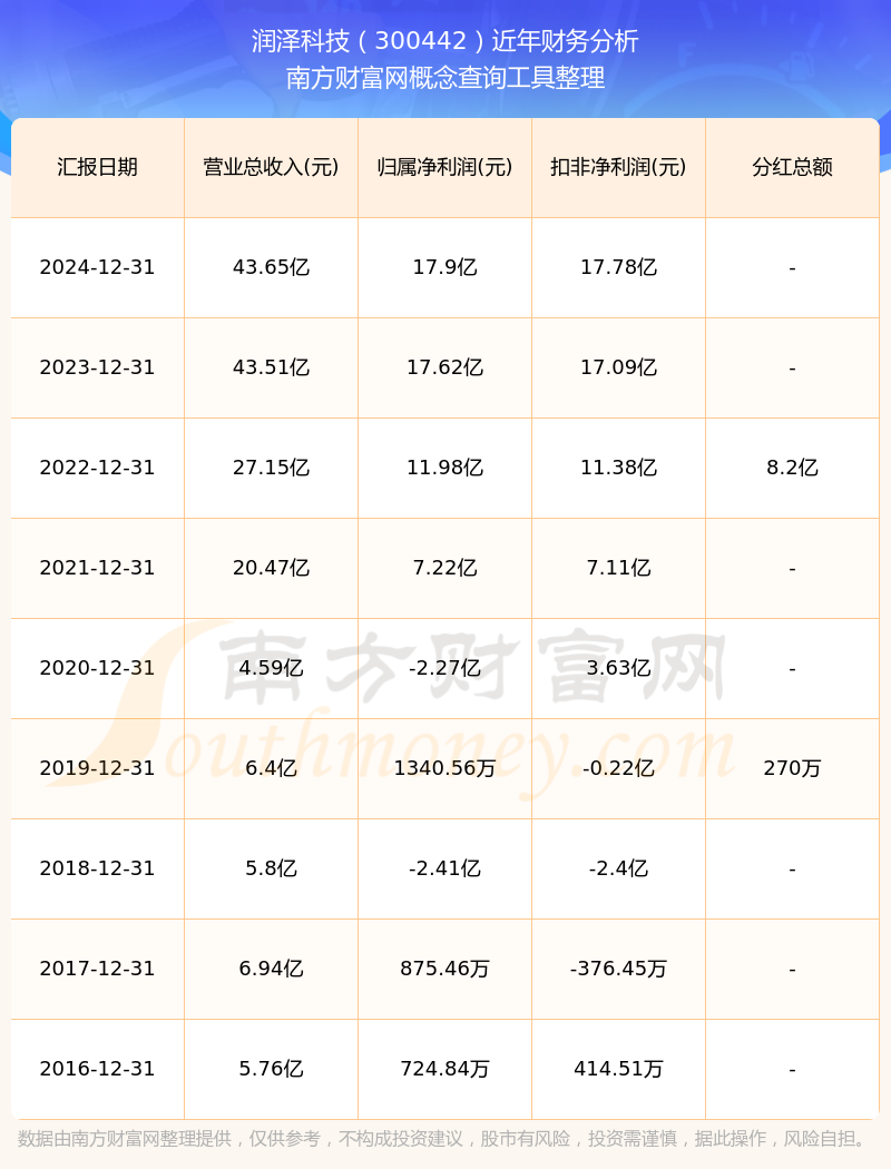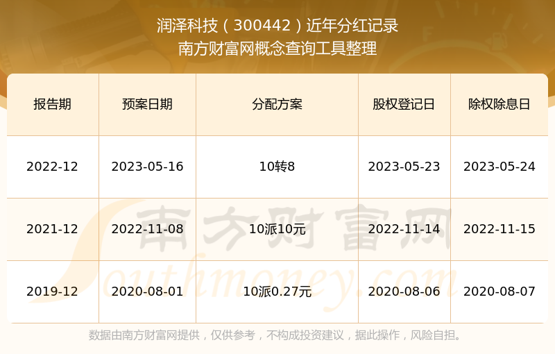 近年潤澤科技分紅派息情況如下表所示: