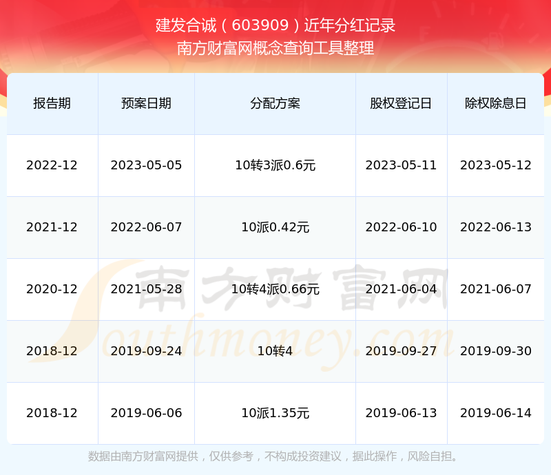 建發(fā)合誠最新一次公布的分紅方案:10轉3派0.6元。