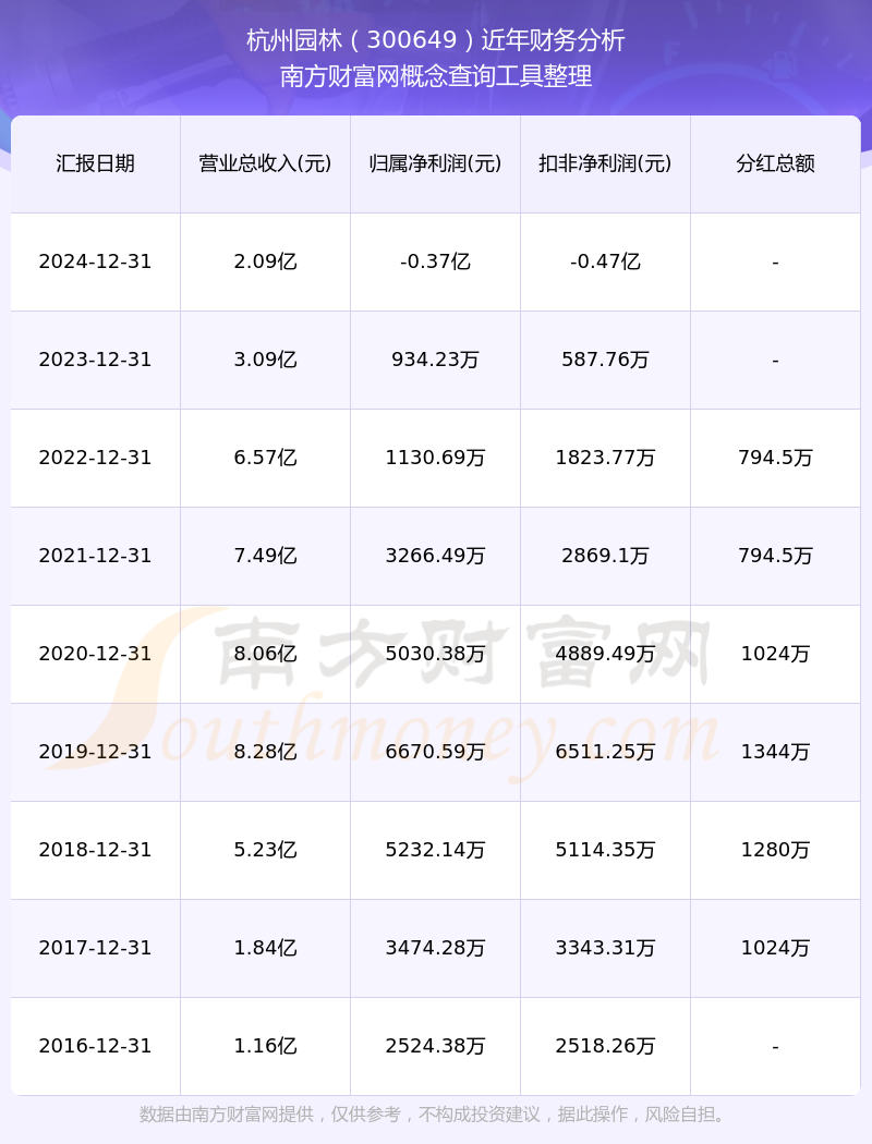 2024年報顯示,杭州園林實現(xiàn)營收2.09億,同比增長-32.39%;凈利潤-3717.3萬,同比增長-497.9%;毛利率8.43%。
