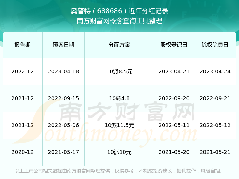奧普特最新一次公布的分紅方案:10派8.5元。