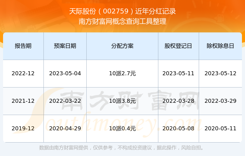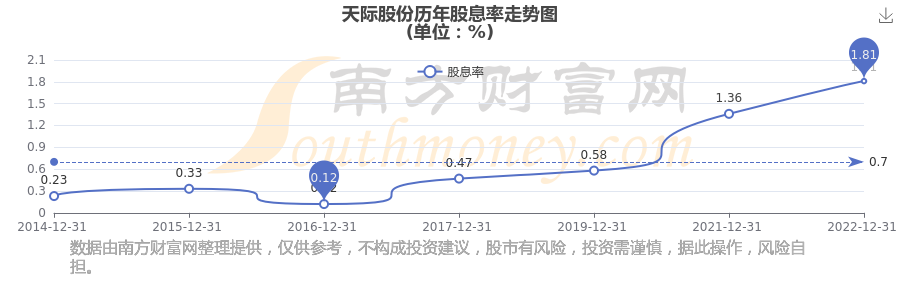 天際股份最新一次公布的分紅方案:10派2.7元。