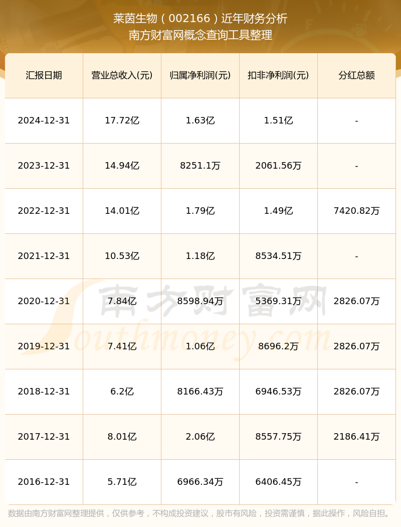 萊茵生物公司2024年實(shí)現(xiàn)營(yíng)業(yè)收入17.72億元,同比增長(zhǎng)18.6%;凈利潤(rùn)1.63億元,同比增長(zhǎng)97.56%;毛利率29.33%。