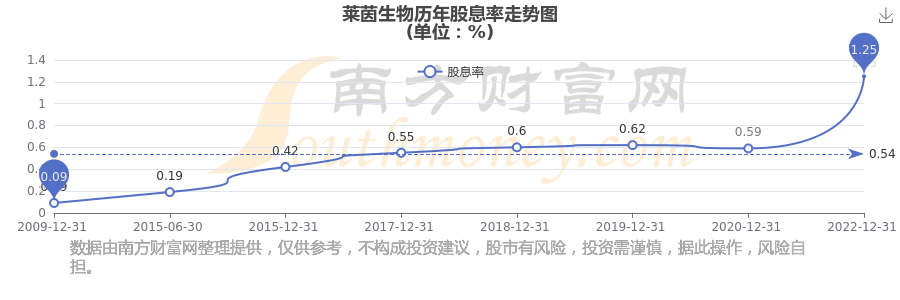萊茵生物歷年股息率走勢(shì)如下圖: