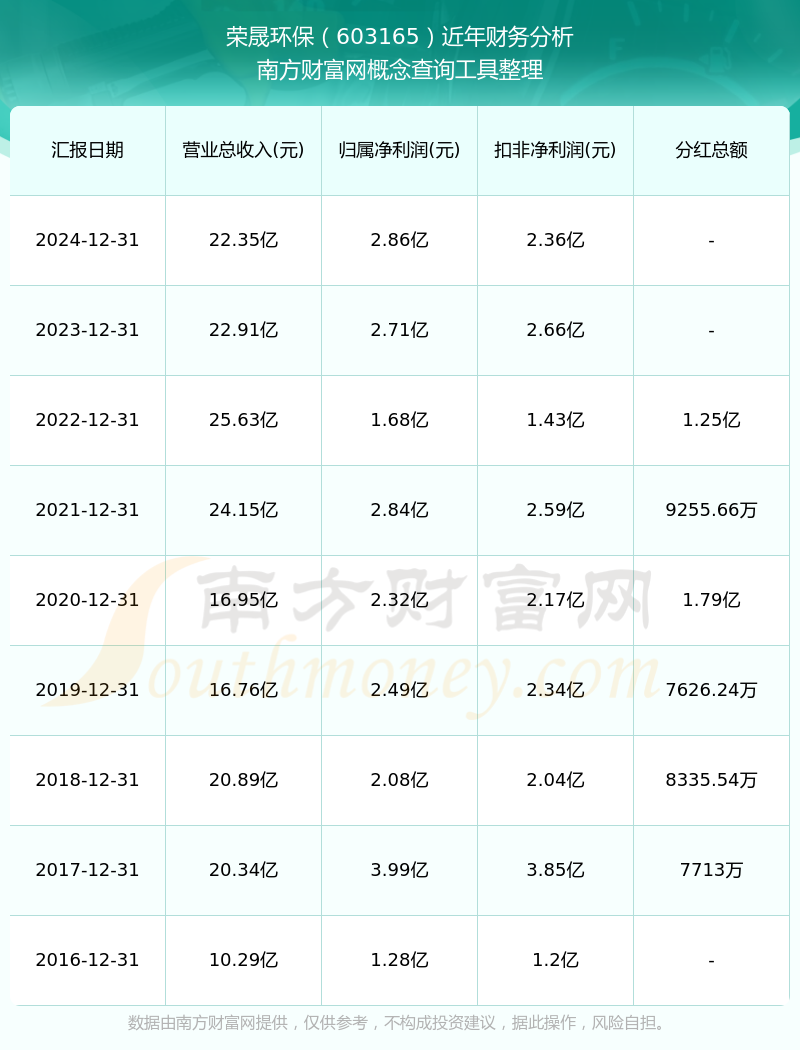 2024年榮晟環(huán)?偁I收22.35億,同比增長-2.45%;凈利潤2.86億,同比增長5.79%;銷售毛利率14.96%。