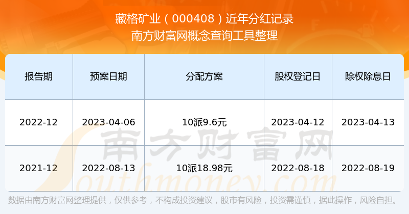 藏格礦業(yè)最新一次公布的分紅方案:10派9.6元。