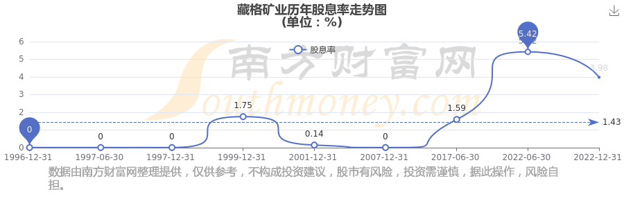 藏格礦業(yè)歷年股息率走勢如下圖: