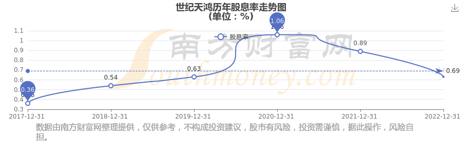 世紀(jì)天鴻歷年股息率走勢(shì)如下圖: