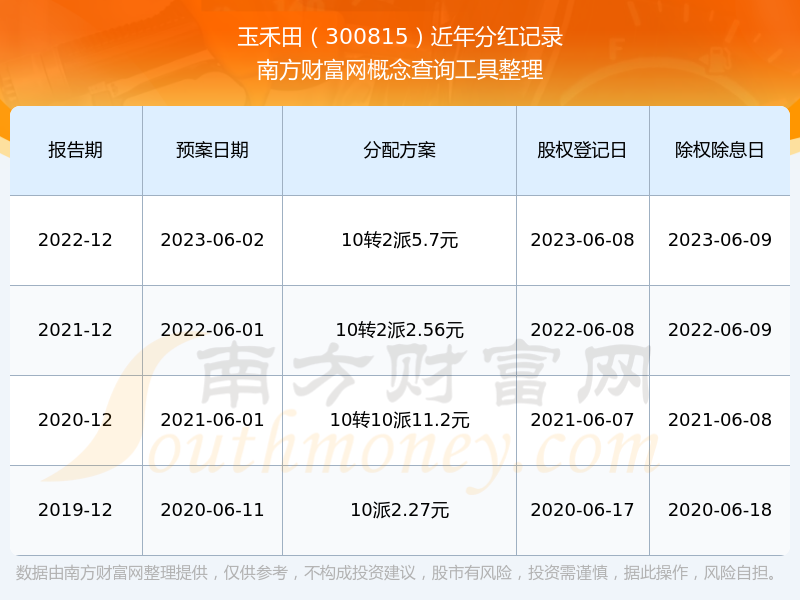 玉禾田什么時候分紅?