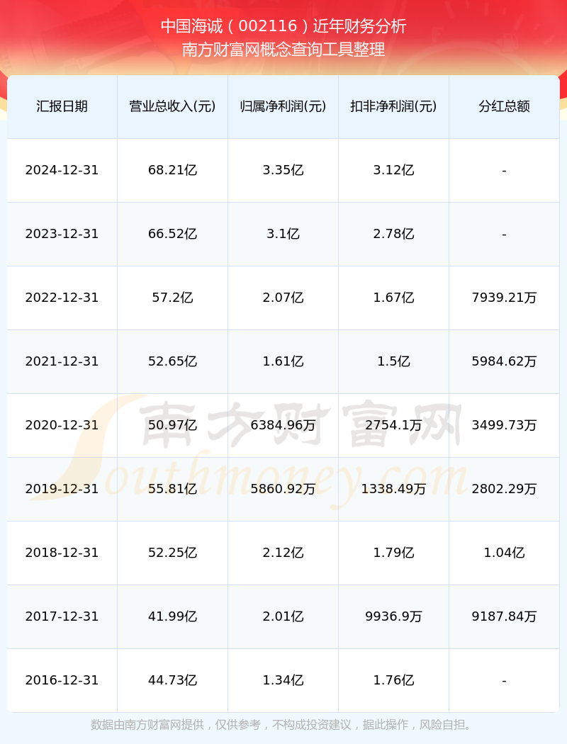 2024年中國海誠總營收68.21億,同比增長2.54%;凈利潤3.35億,同比增長8.06%;銷售毛利率15.27%。