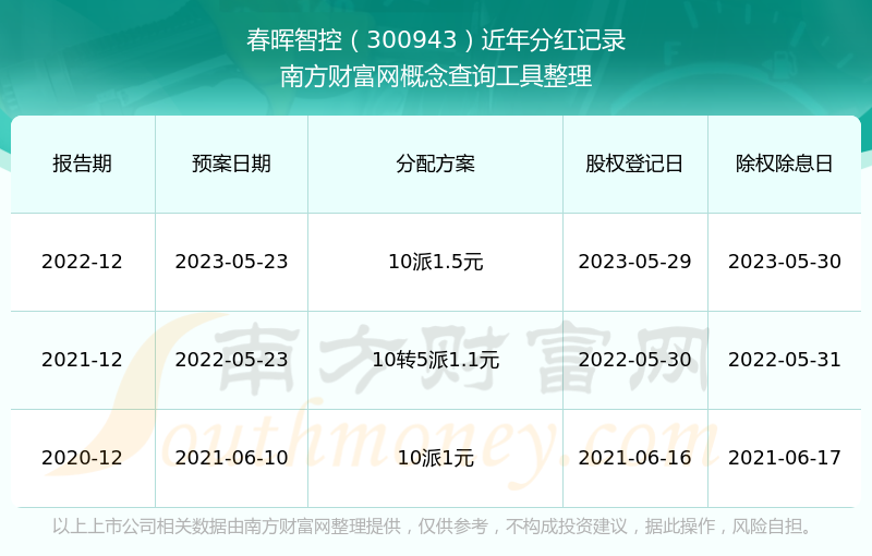 春暉智控歷年分紅派息情況如下表所示: