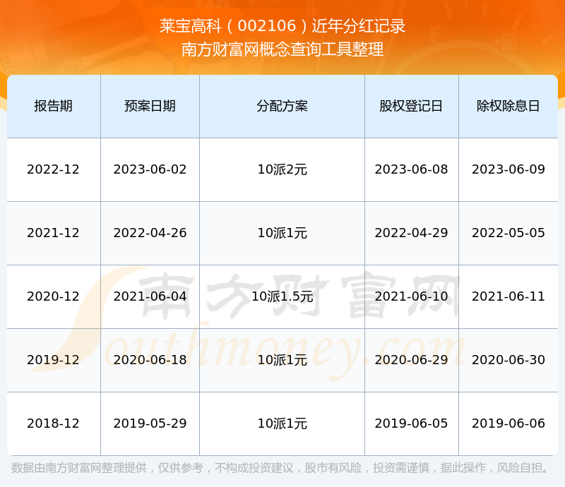 萊寶高科最新一次公布的分紅方案:10派2元。