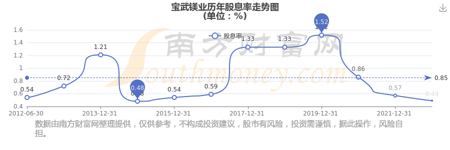 寶武鎂業(yè)歷年股息率走勢如下圖: