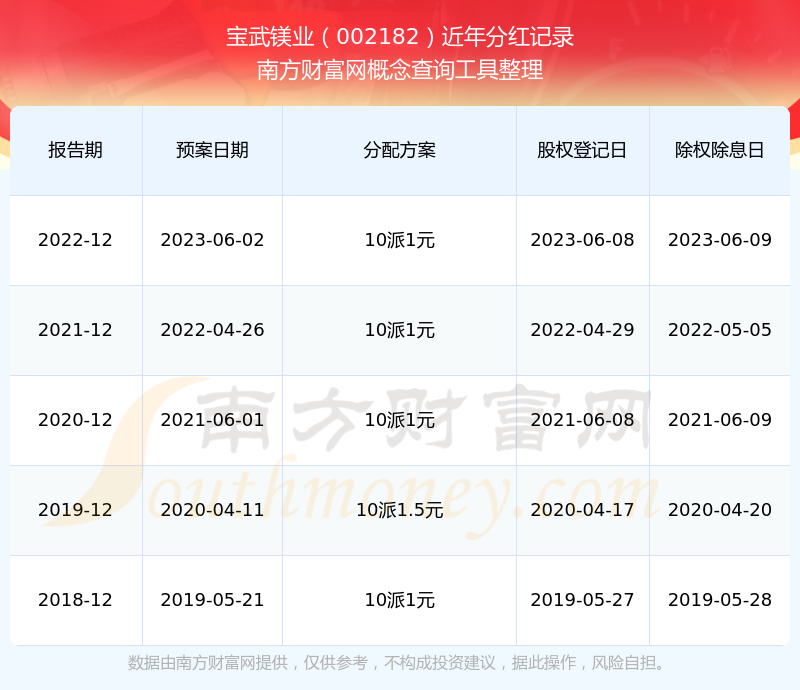 寶武鎂業(yè)最新一次公布的分紅方案:10派1元。