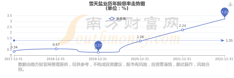 雪天鹽業(yè)歷年股息率走勢如下圖: