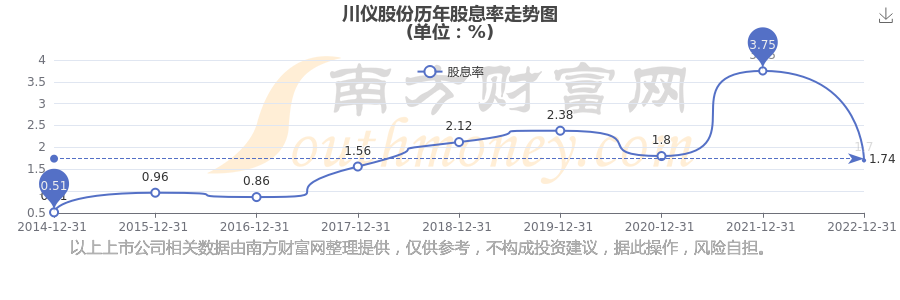 川儀股份最新一次公布的分紅方案為10派6元。本次權益分派股權登記日為2023年6月14日,除權除息日為2023年6月15日,派息日為2023年6月15日。