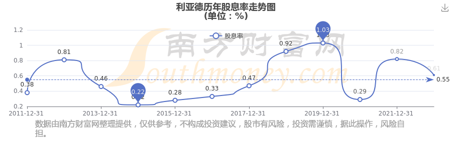 利亞德歷年股息率走勢如下圖: