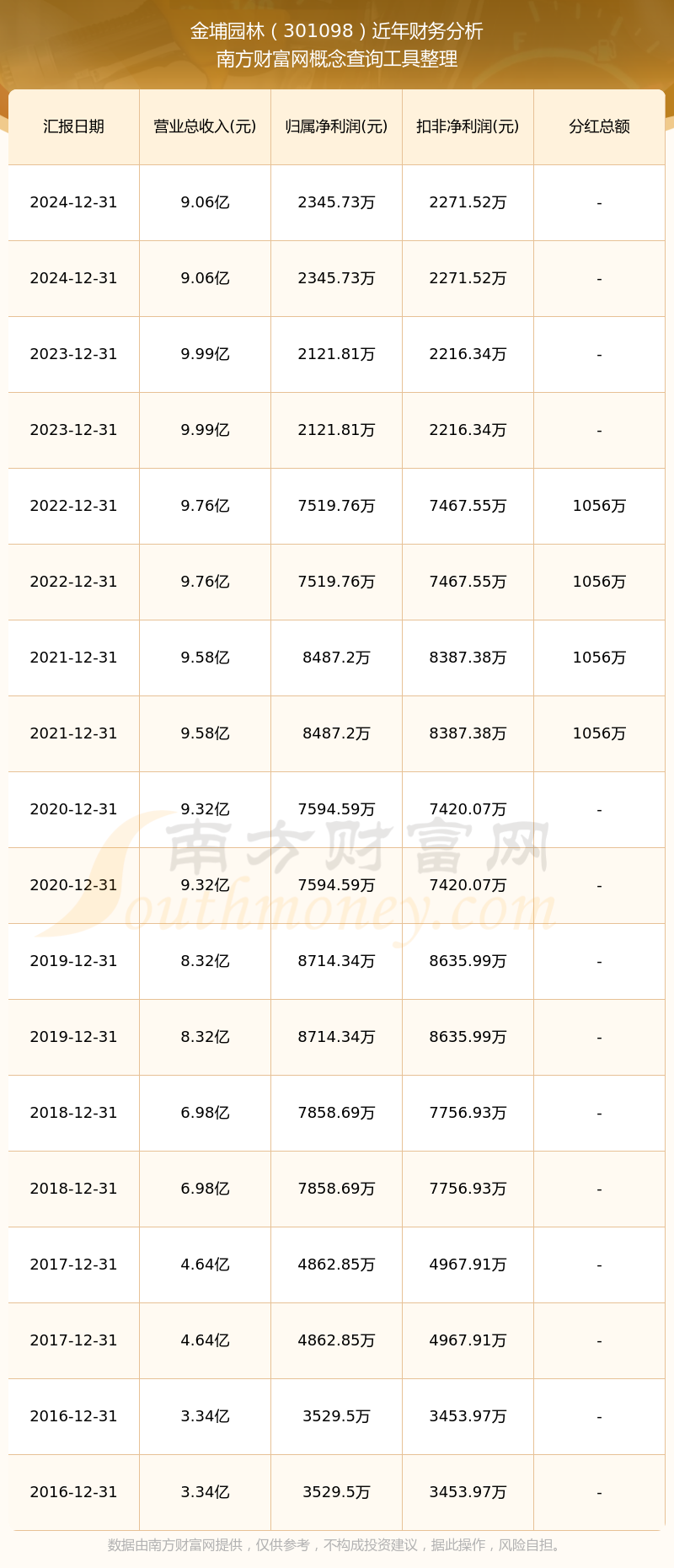 金埔園林公司2024年實(shí)現(xiàn)營(yíng)業(yè)收入9.06億元,同比增長(zhǎng)-9.32%;凈利潤(rùn)2345.73萬(wàn)元,同比增長(zhǎng)10.55%;毛利率30.18%。