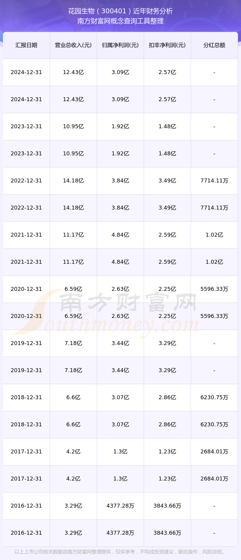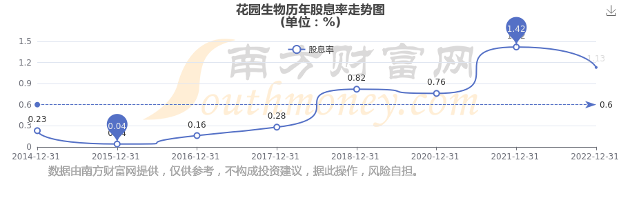 花園生物最新一次公布的分紅方案:10派1.4元。