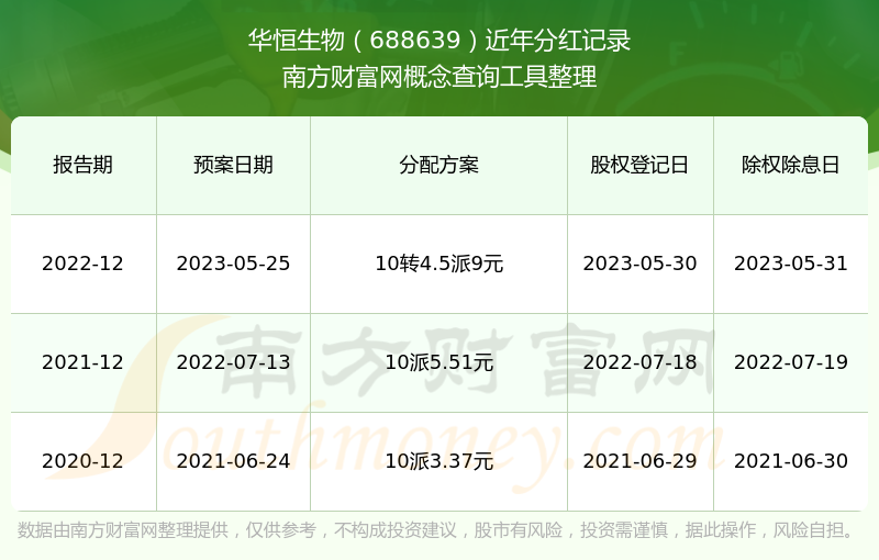 華恒生物最新一次公布的分紅方案為10轉(zhuǎn)4.5派9元。本次權(quán)益分派股權(quán)登記日為2023年5月30日,除權(quán)除息日為2023年5月31日,派息日為2023年5月31日。