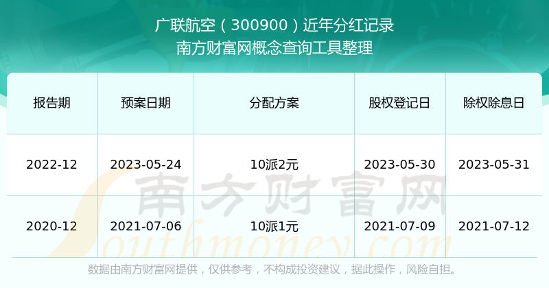 廣聯(lián)航空最新一次公布的分紅方案:10派2元。
