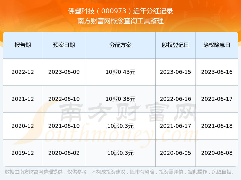 佛塑科技最新一次公布的分紅方案:10派0.43元。