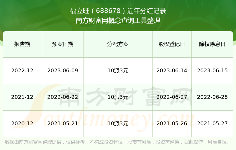 福立旺最新一次公布的分紅方案:10派3元。