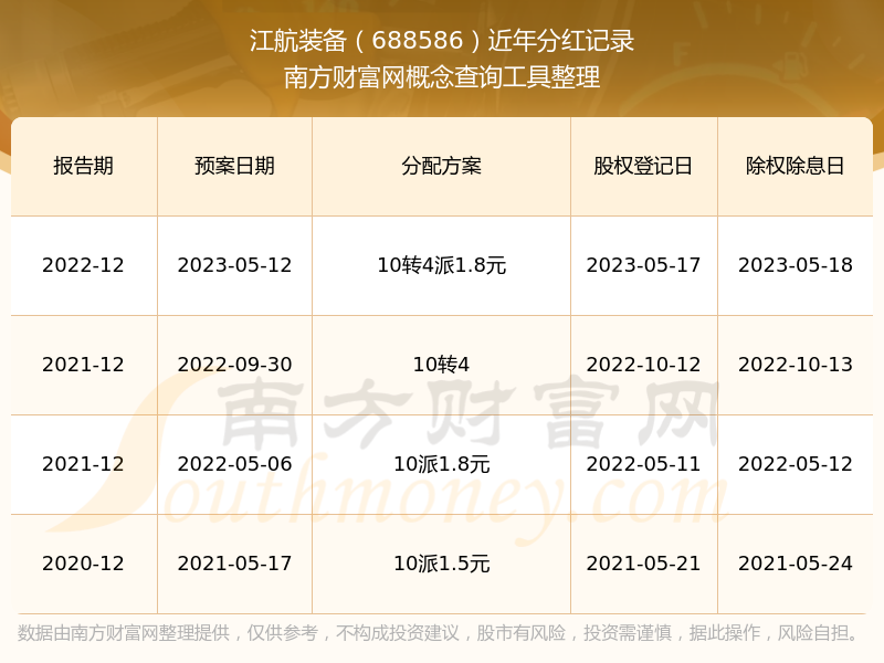 江航裝備最新一次公布的分紅方案:10轉(zhuǎn)4派1.8元。