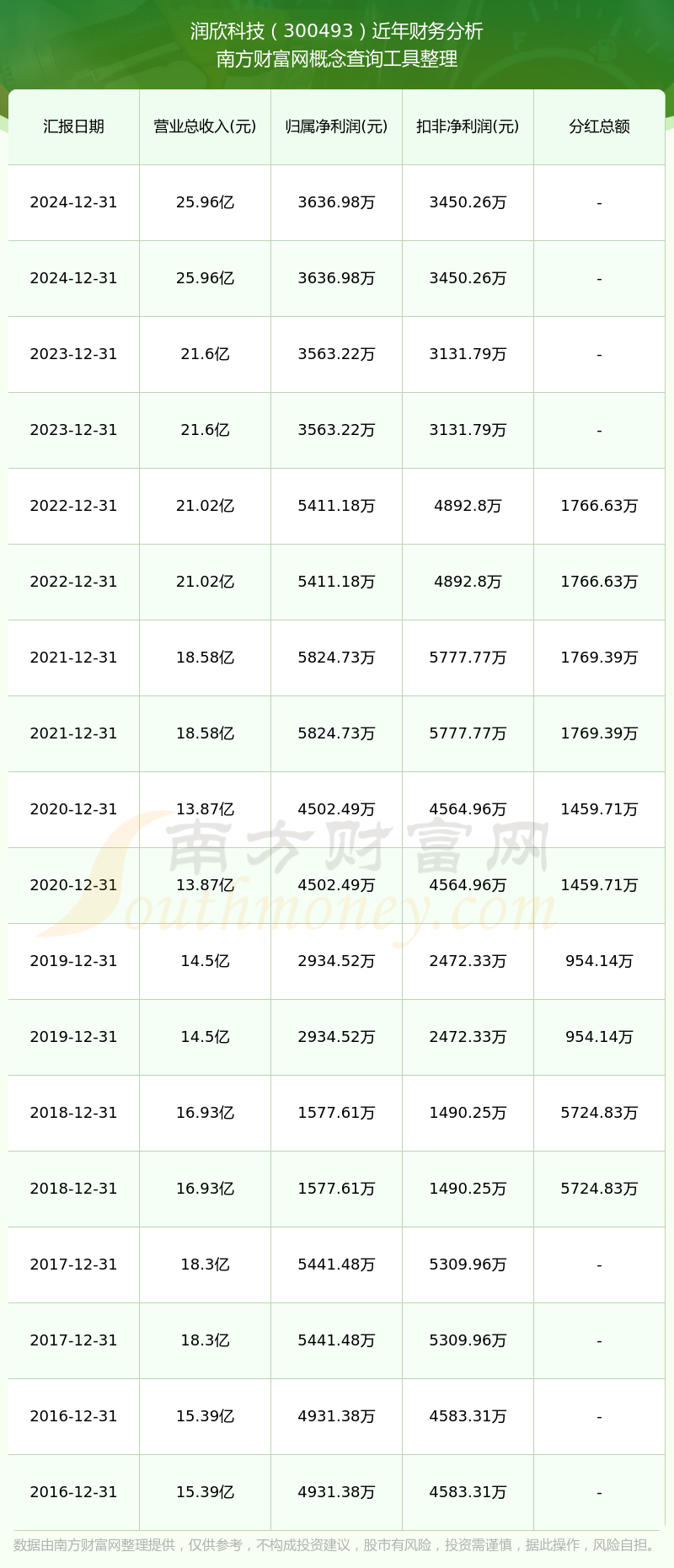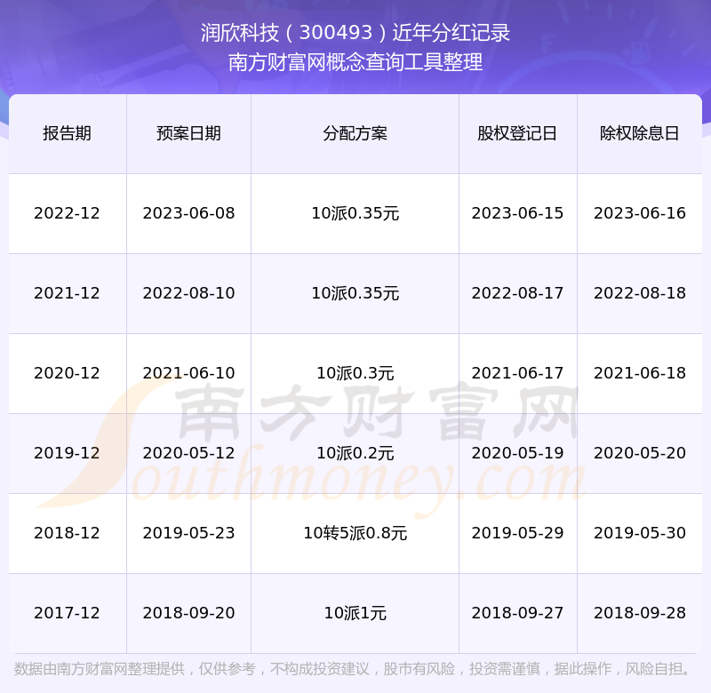 近年潤欣科技分紅派息情況如下表所示: