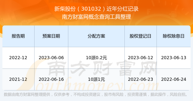 新柴股份最新一次公布的分紅方案為10派0.2元。本次權(quán)益分派股權(quán)登記日為2023年6月12日,除權(quán)除息日為2023年6月13日,派息日為2023年6月13日。