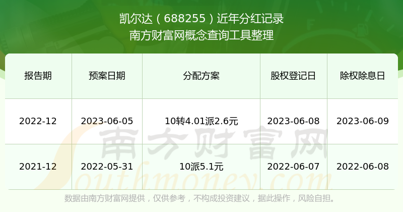 凱爾達最新一次公布的分紅方案:10轉4.01派2.6元。