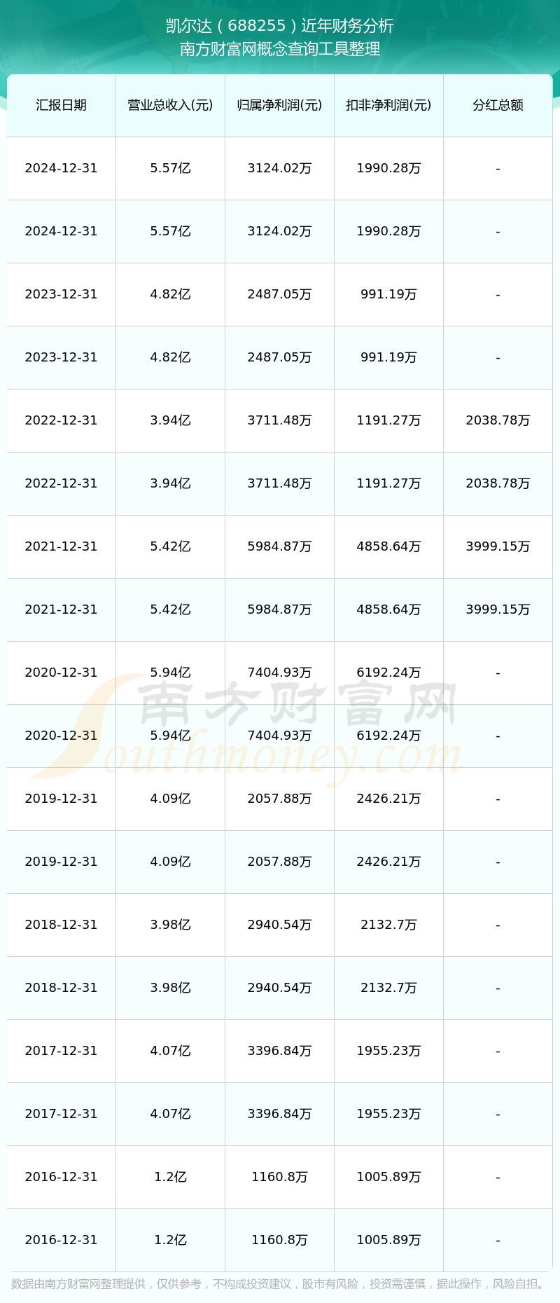 凱爾達公司2024年實現營收5.57億元,凈利潤3124.02萬元,毛利率20.43%。