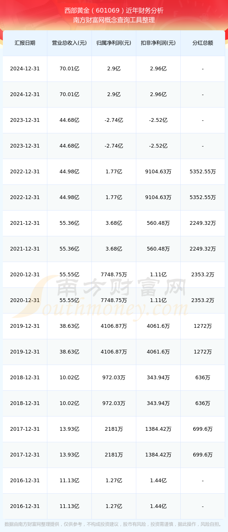 西部黃金歷年分紅派息情況如下表所示: