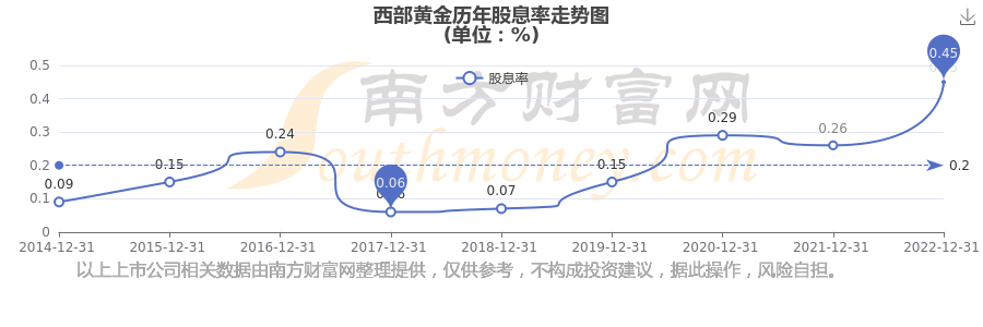 西部黃金歷年股息率走勢如下圖: