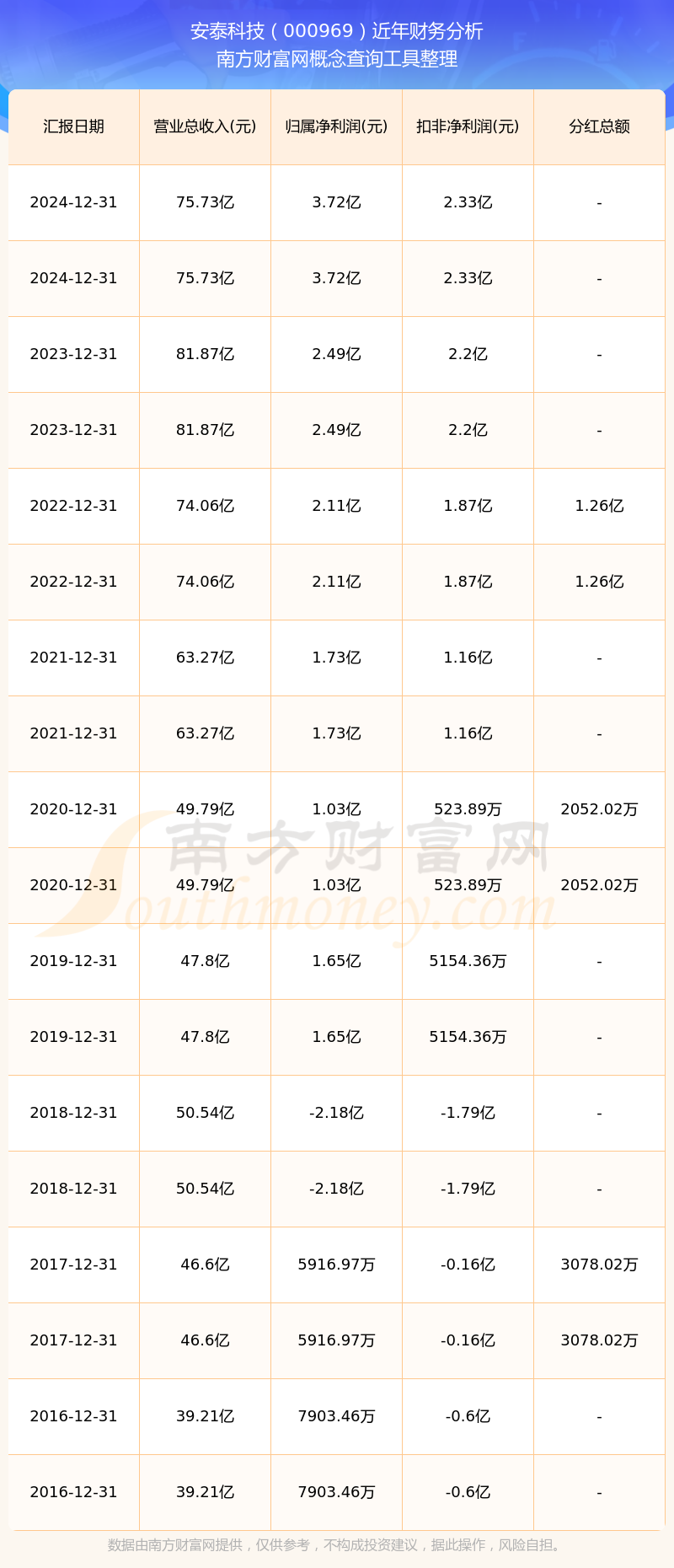 安泰科技?xì)v年分紅派息情況如下表所示: