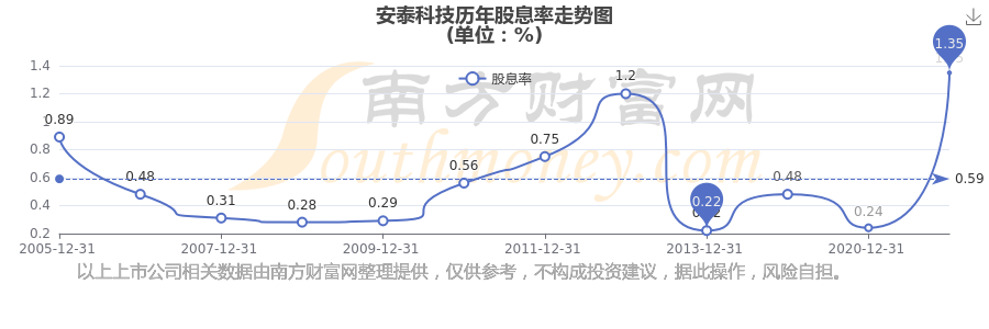 安泰科技?xì)v年股息率走勢如下圖: