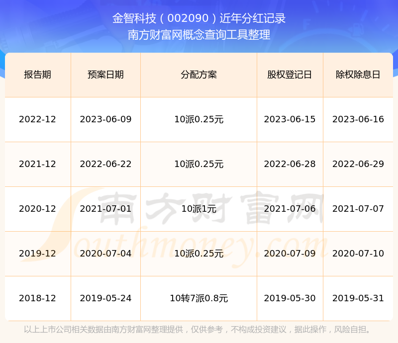 金智科技最新一次公布的分紅方案為10派0.25元。本次權(quán)益分派股權(quán)登記日為2023年6月15日,除權(quán)除息日為2023年6月16日,派息日為2023年6月16日。